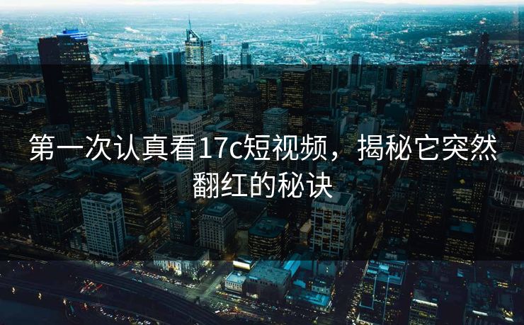 第一次认真看17c短视频,揭秘它突然翻红的秘诀