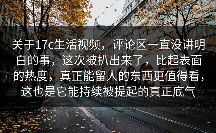 关于17c生活视频,评论区一直没讲明白的事,这次被扒出来了,比起表面的热度,真正能留人的东西更值得看,这也是它能持续被提起的真正底气