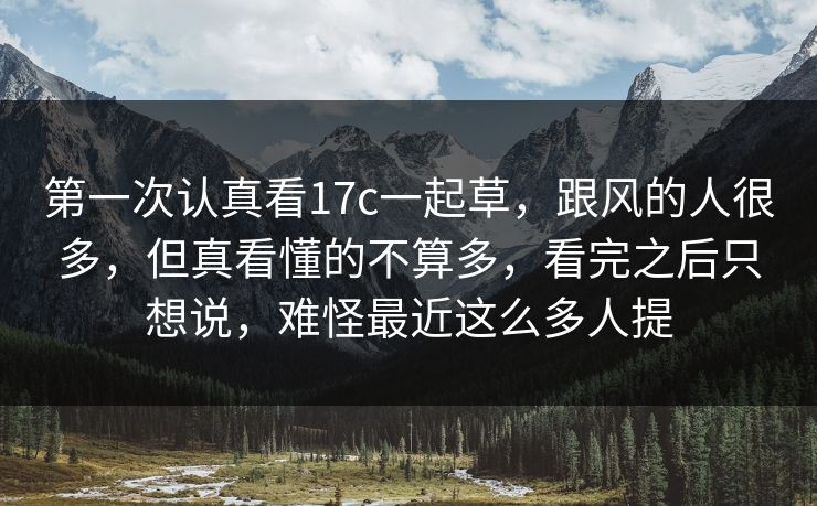 第一次认真看17c一起草,跟风的人很多,但真看懂的不算多,看完之后只想说,难怪最近这么多人提