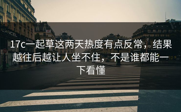 17c一起草这两天热度有点反常,结果越往后越让人坐不住,不是谁都能一下看懂