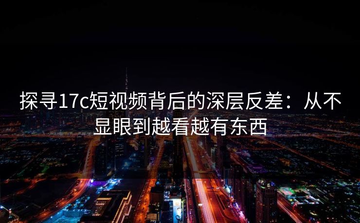 探寻17c短视频背后的深层反差:从不显眼到越看越有东西